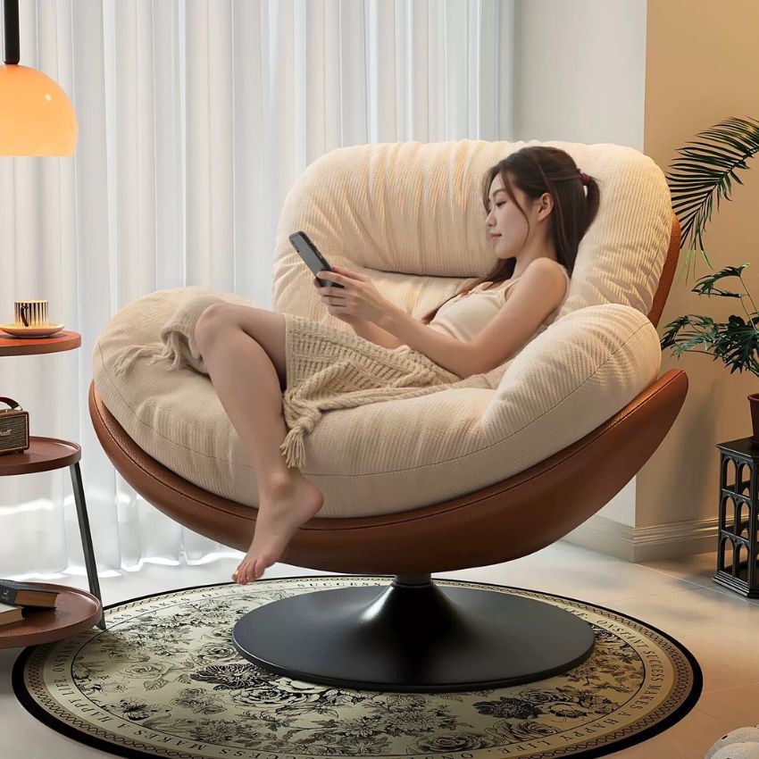 [ẢNH THẬT] Ghế sofa xoay kiểu Nhật, ghế ngồi đọc sách hình vỏ trứng, bọc da đệm bông siêu dày, nội thất sang trọng