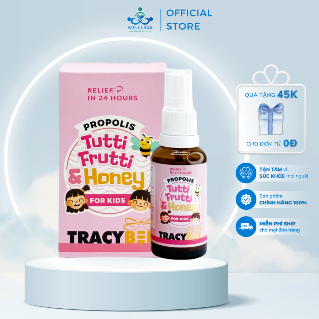 Xịt họng keo ong xanh TRACYBEE vị trái cây giúp giảm nhanh cơn ho, viêm họng, tăng sức đề kháng cho bé từ 01 tuổi (30ml)