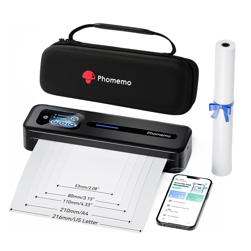 Phomemo M832D Máy in A4 di động nâng cấp có màn hình cảm ứng, Máy in không mực nhiệt không dây Bluetooth 300DPI cho doanh nghiệp du lịch Tài liệu, hóa đơn, hình ảnh, bài tập và in dữ
