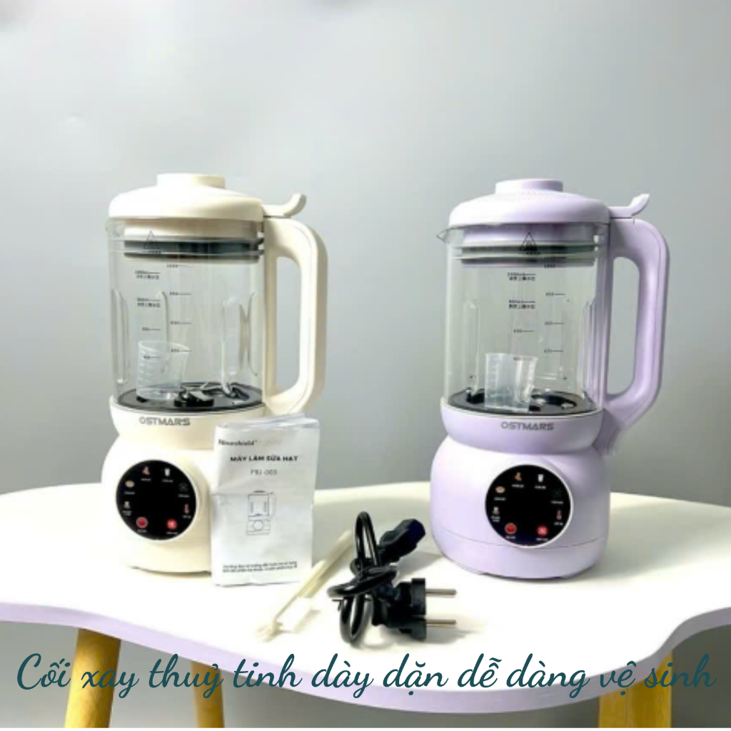 Máy làm sữa hạt, máy xay sinh tố đa năng chính hãng ostmars cối thuỷ tinh 1100ml bản tiếng việt