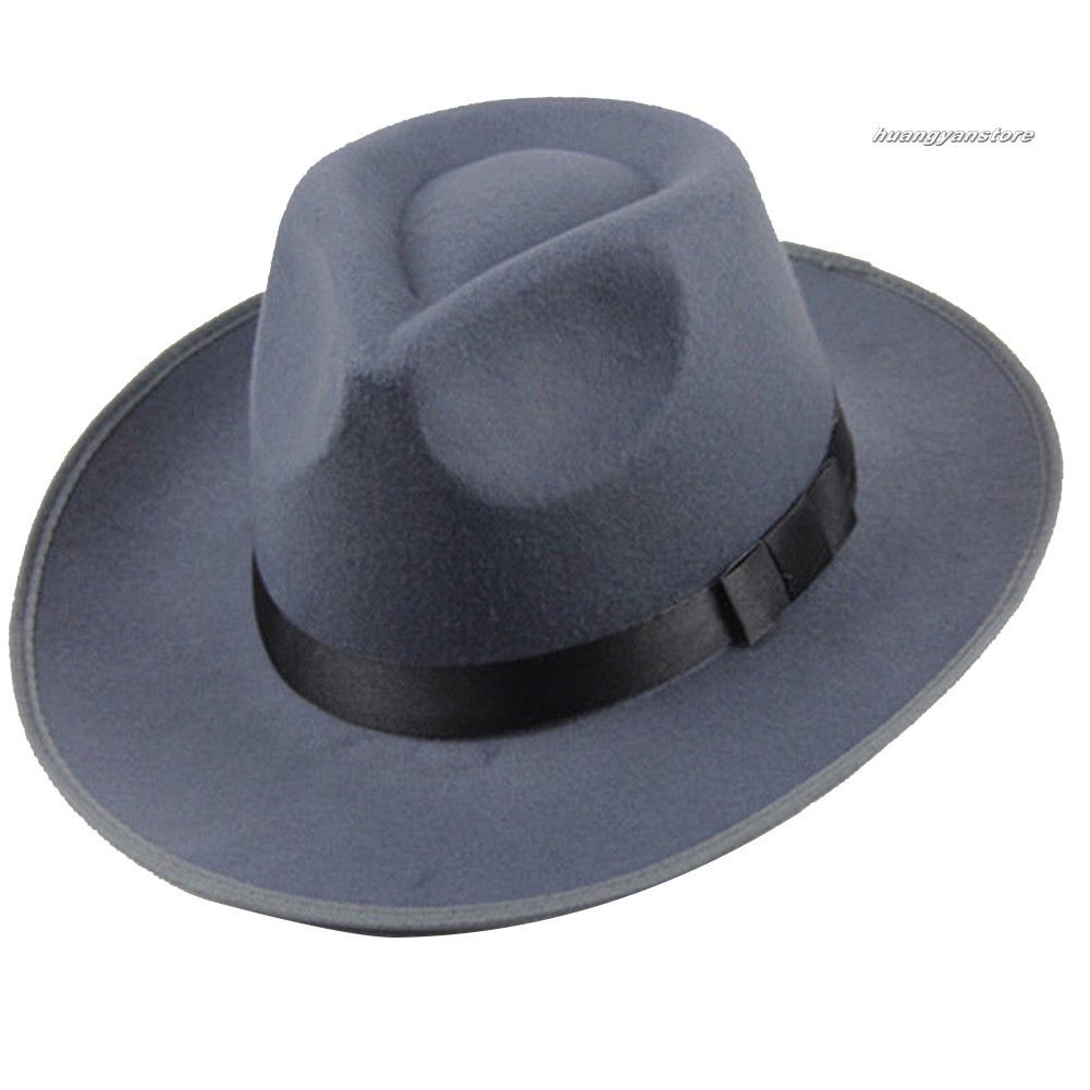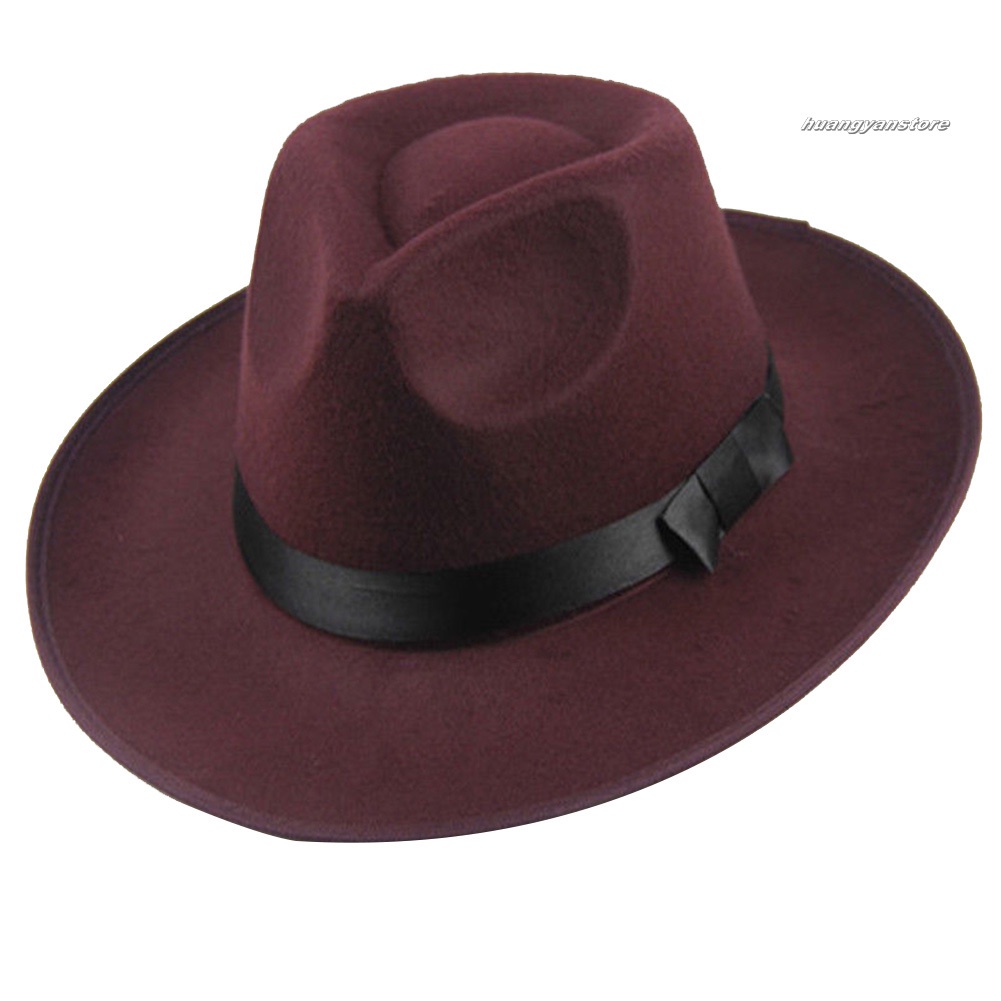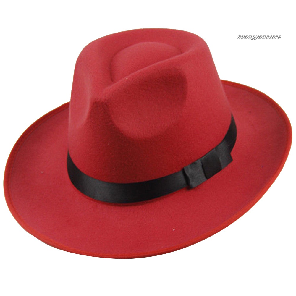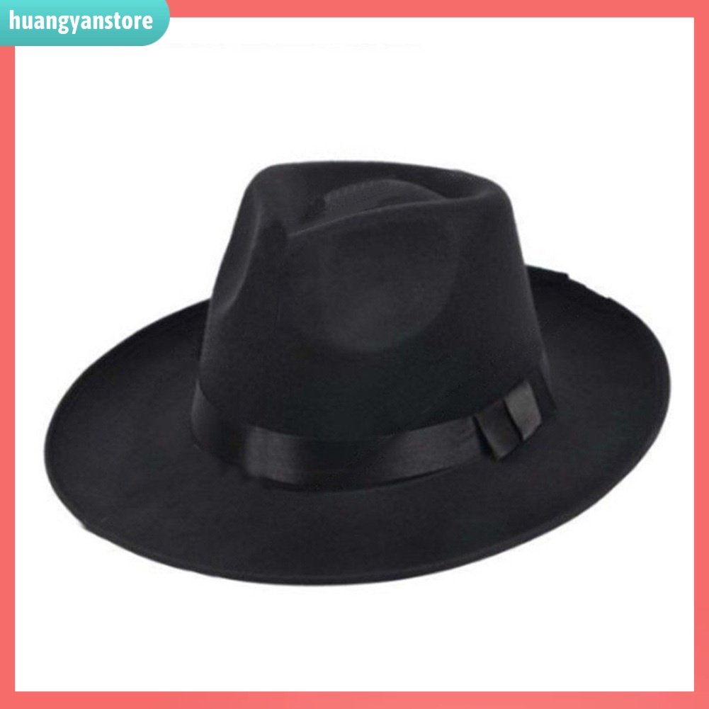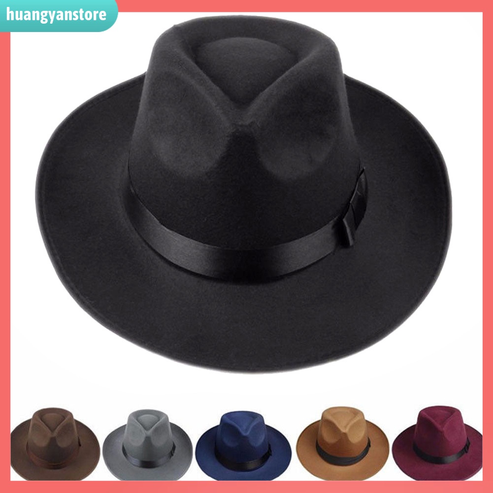 HY| Mũ Fedora Panama Vành Rộng Bằng Vải Nỉ Cứng Kiểu Vintage Thời Trang Mùa Thu Cho Nam Và Nữ