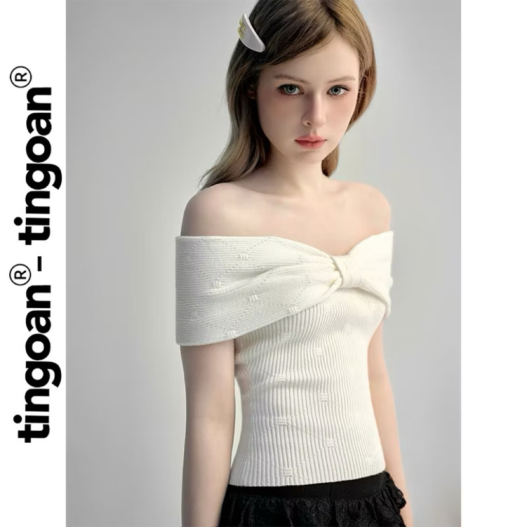 Áo len xù xám trễ vai nơ ngang Hee-ra Top Tingoan áo len Hera