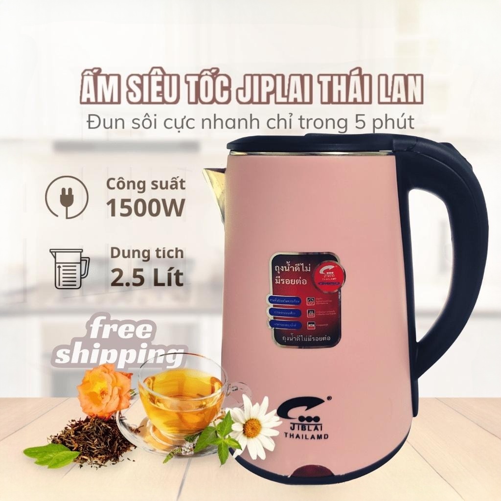 Ấm Siêu Tốc JIPLAI THÁI LAN Cao Cấp 2.5L, Ấm Đun nước 2 Lớp Loại Lớn, Nồi Đun Nươc Tiện Lợi