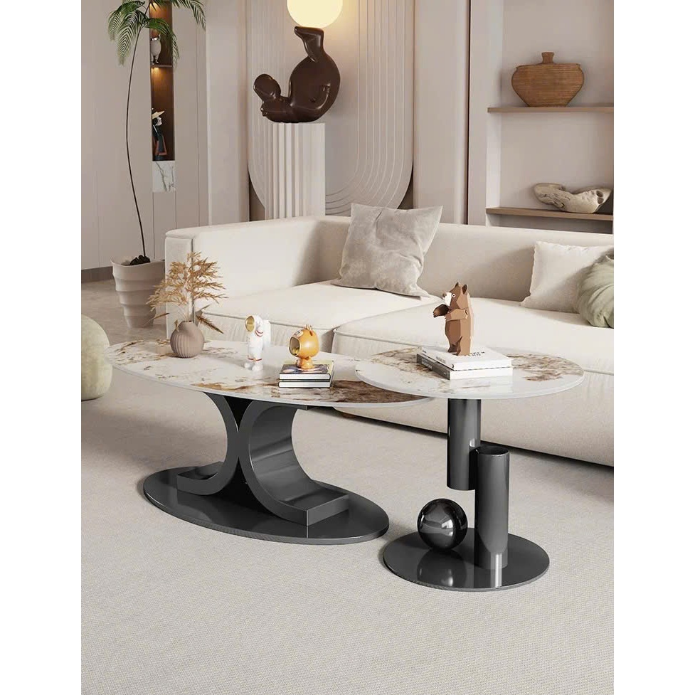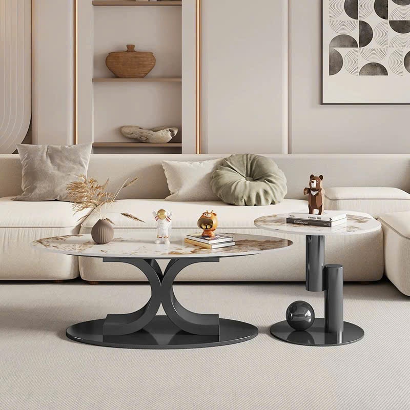 Set bàn trà sofa chân sắt sơn tĩnh điện, decor không gian phòng khách sang trọng, đá ceramic KINGDOM