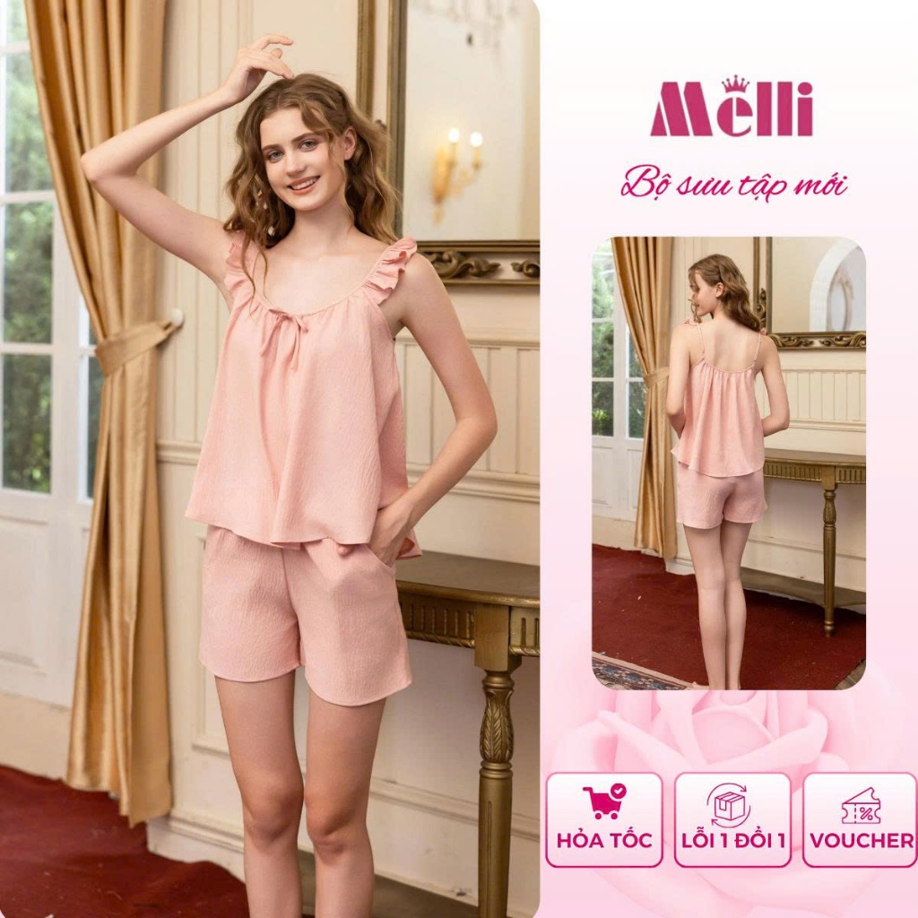 Bộ Đồ Ngủ 2 Dây Nữ Cotton Mềm Mịn – Đồ Ngủ Thoáng Mát, Co Giãn Nhẹ, Thoải Mái Mặc Nhà Mùa Hè Thương Hiệu Melli B2D04