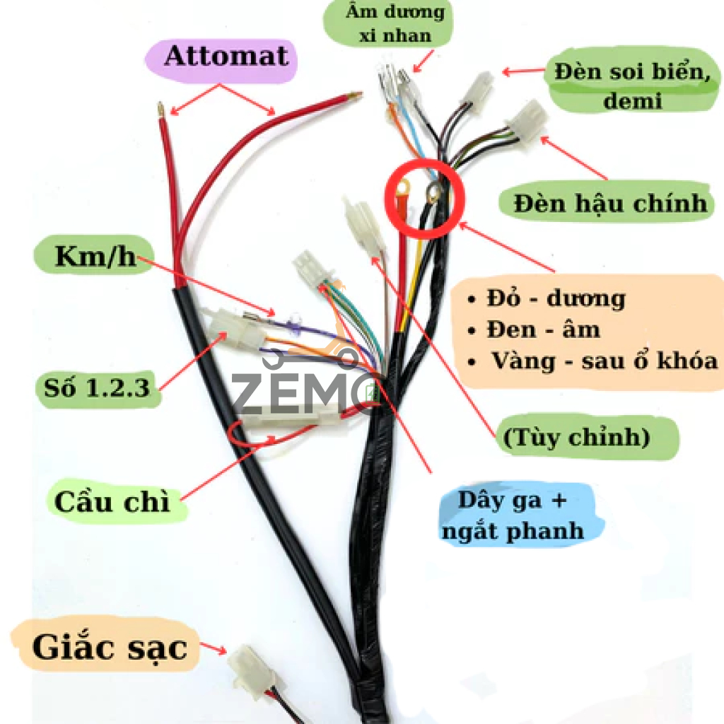 Dây nguồn tổng xe điện xmen và 133s,M133 TIANNENG kèm sơ đồ lắp đặt
