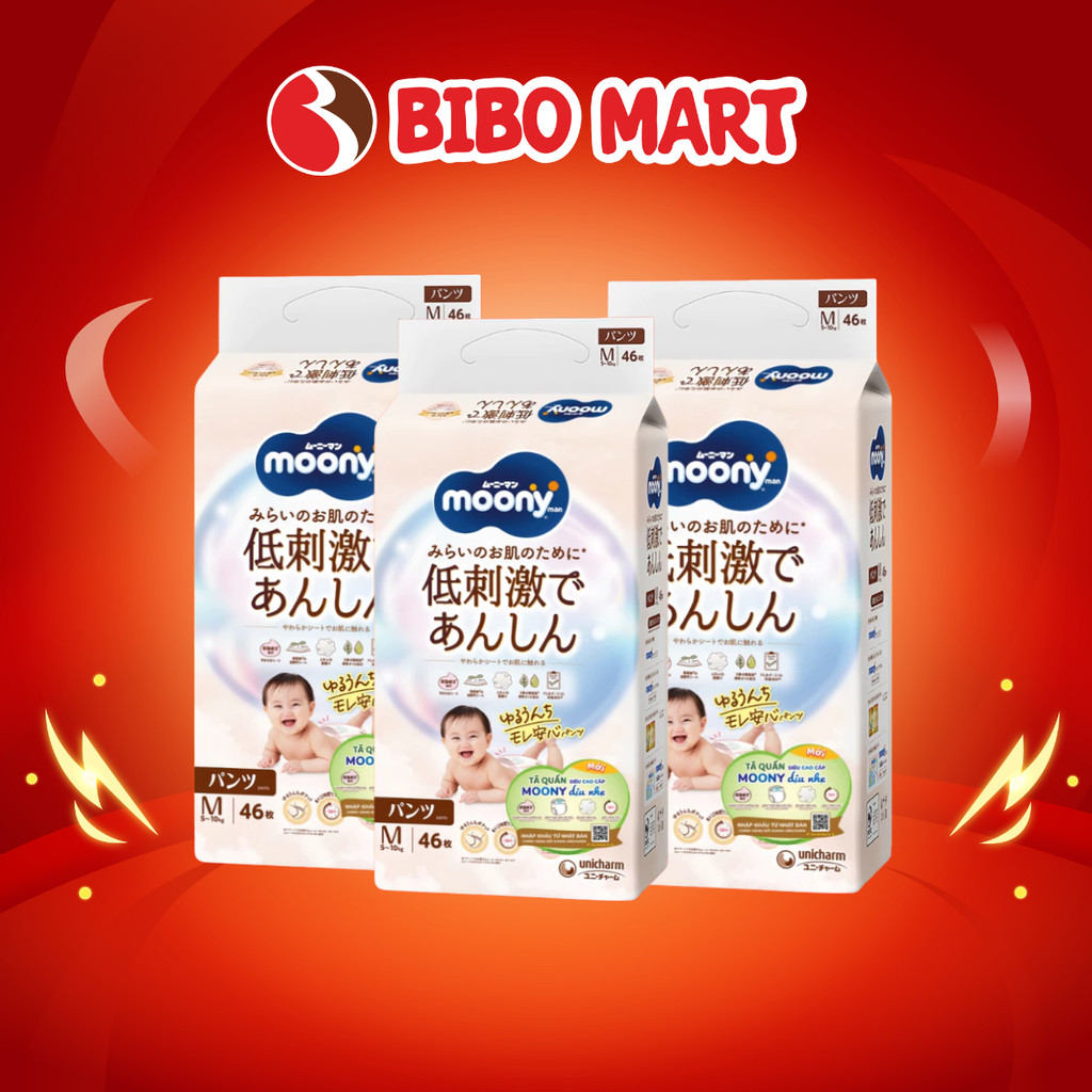 Tã Bỉm Quần Moony Natural Tã Dán Nhật Bản Cho Da Nhạy Cảm Size M46 Cho Bé 5-10kg - Bibo Mart