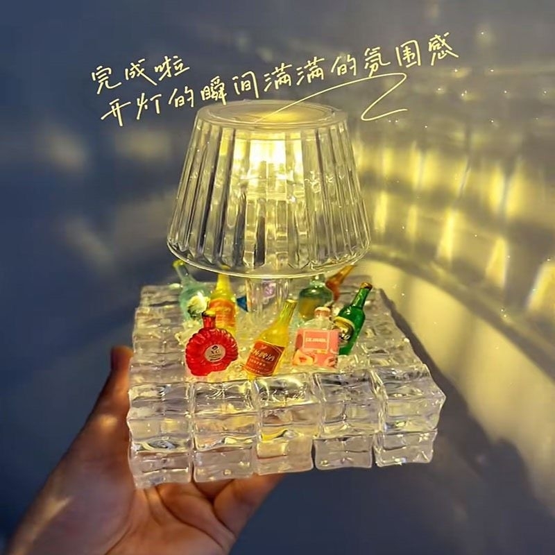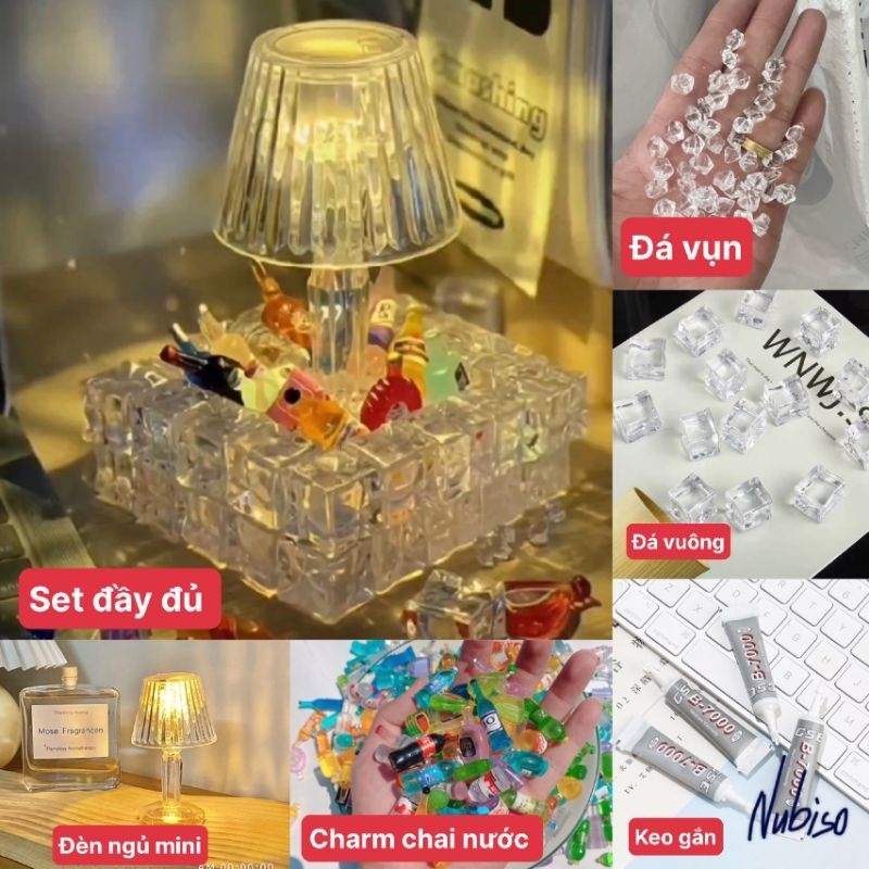 Đèn ngủ chai nước, đèn ngủ handmade, đèn ngủ để bàn tặng kèm đèn ngủ mini và đá pha lê trong suốt