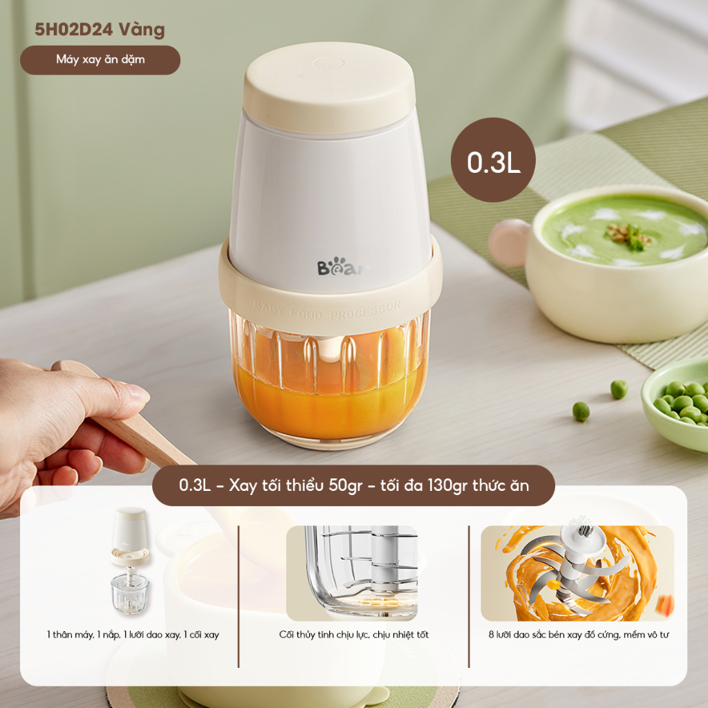 Máy Xay Ăn Dặm Cho Bé Bear CH - 5H02D24 Dung Tích 0.3L Cầm Tay Lưỡi Dao 4 Tầng 8 Cánh Xay Nhuyễn Mịn