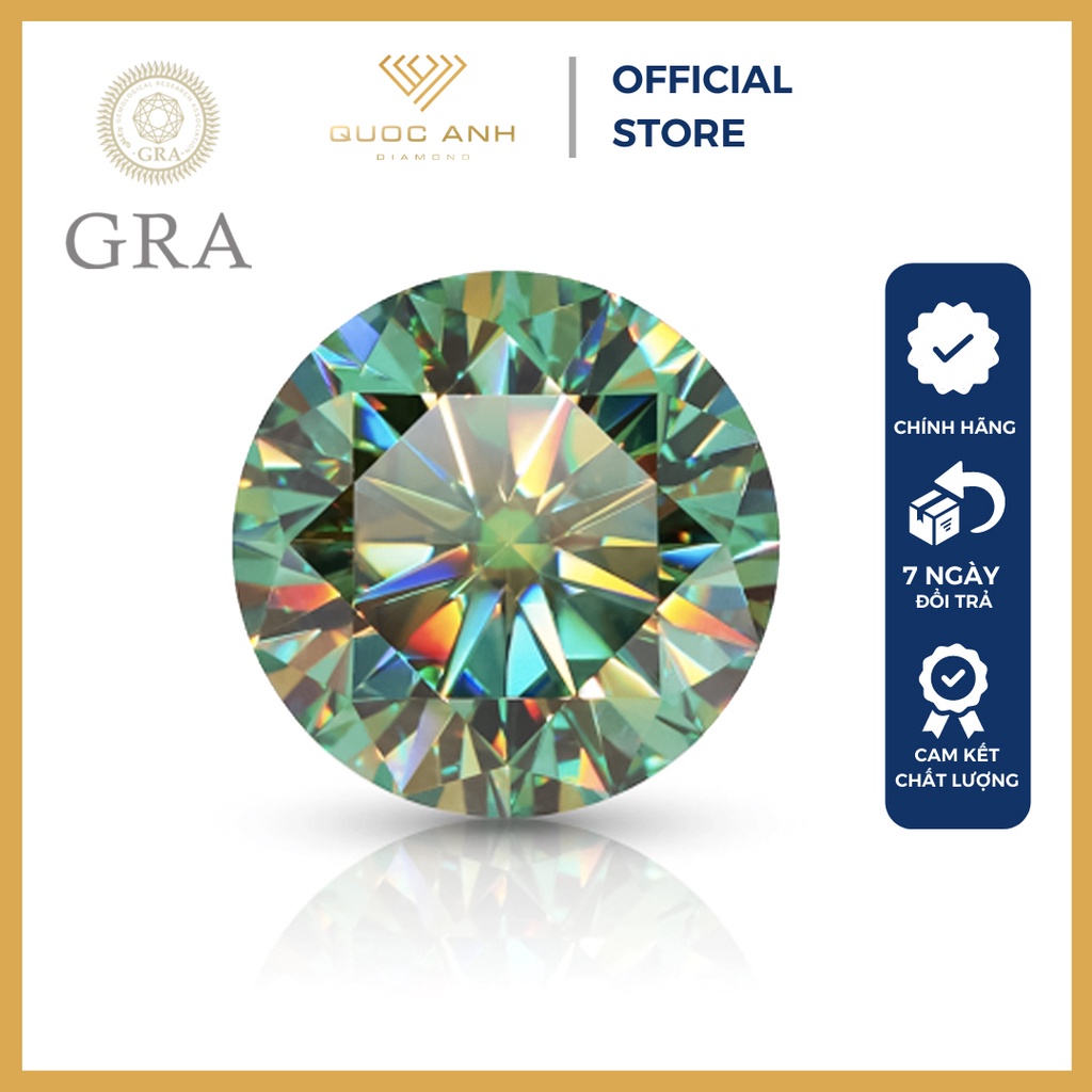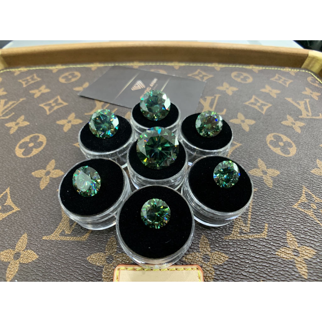 (Size 3 - 7.5 ly - Xanh lá) Kim cương nhân tạo Mỹ Moissanite xanh lá đậm, đầy đủ kiểm định