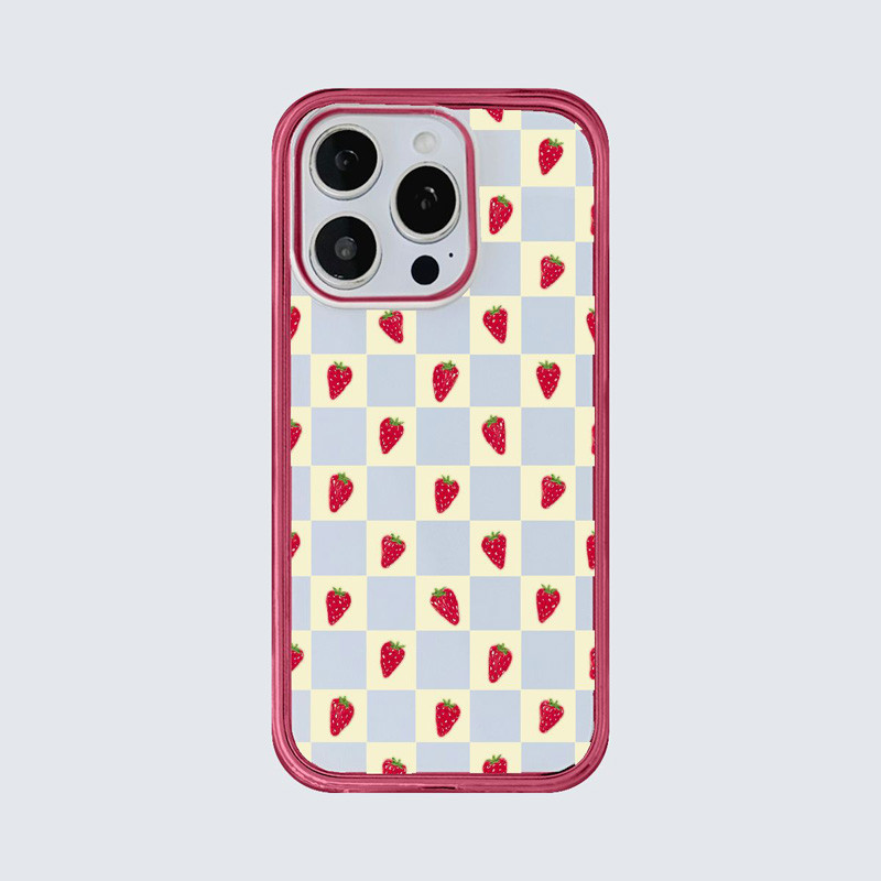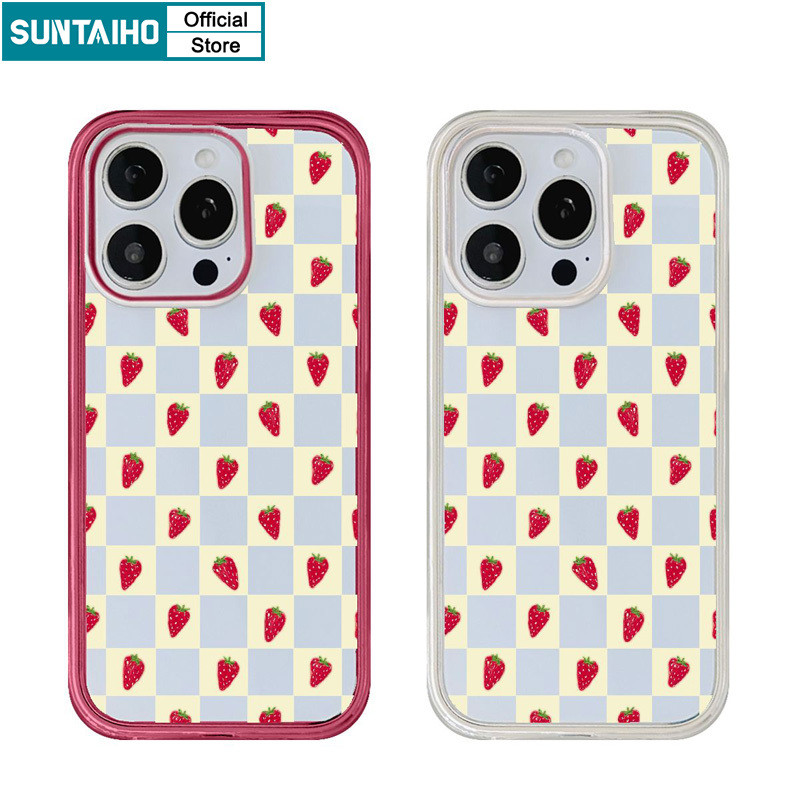 Ốp Điện Thoại Suntaiho Thẩm Mỹ Tươi Dâu Checkerboard Họa Tiết IDM Cứng Cao Cấp Chống Sốc Vỏ Cho iPhone 11 12 13 14 15 16 Pro Max IP