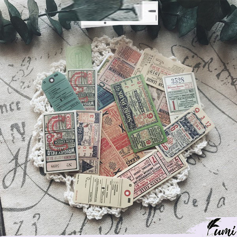 22 miếng sticker vé ticket retro trang trí sổ, bujo, hộp quà STI20