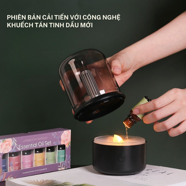 Máy xông tinh dầu phòng ngủ - phun sương tạo ẩm ngọn lửa FLAME
