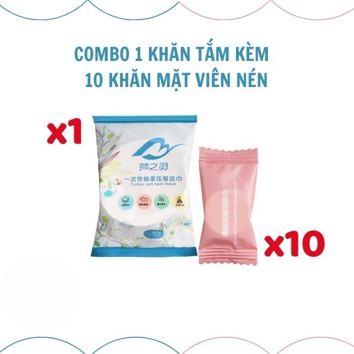 [Top Value] Combo 1 khăn tắm + 10 khăn mặt viên nén du lịch dùng một lần tiện lợi