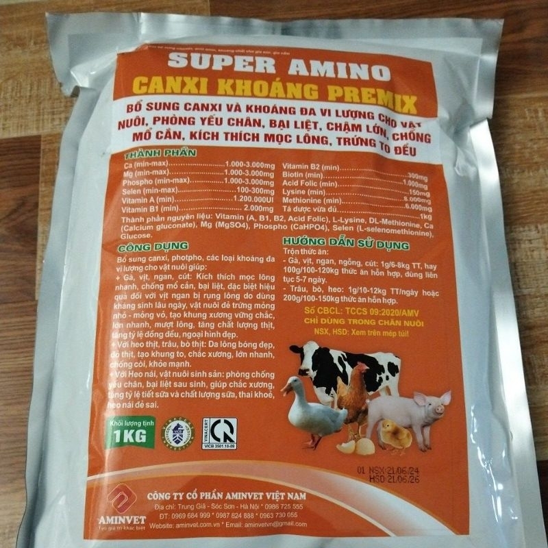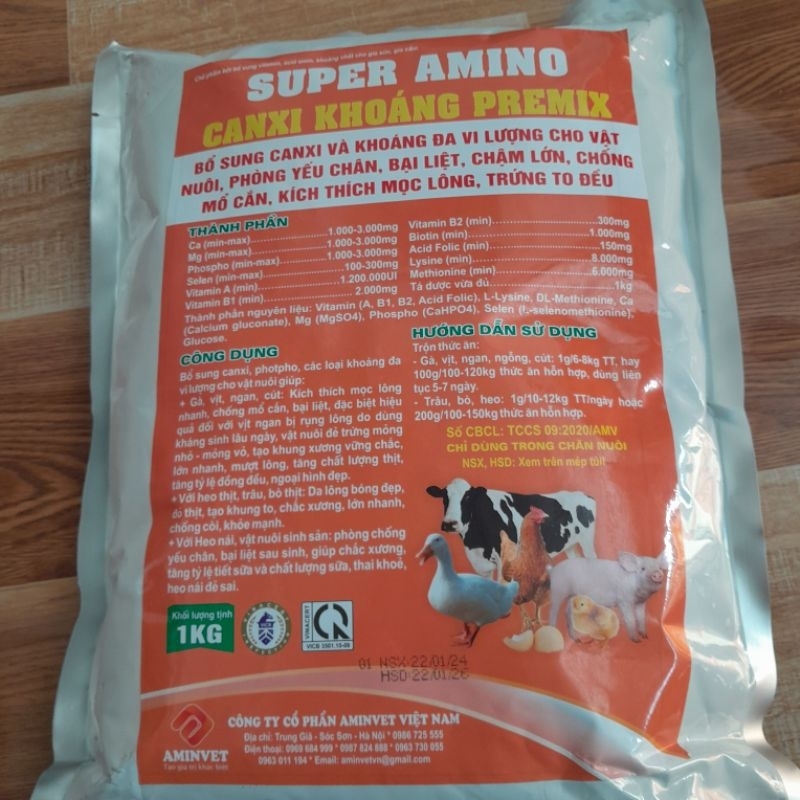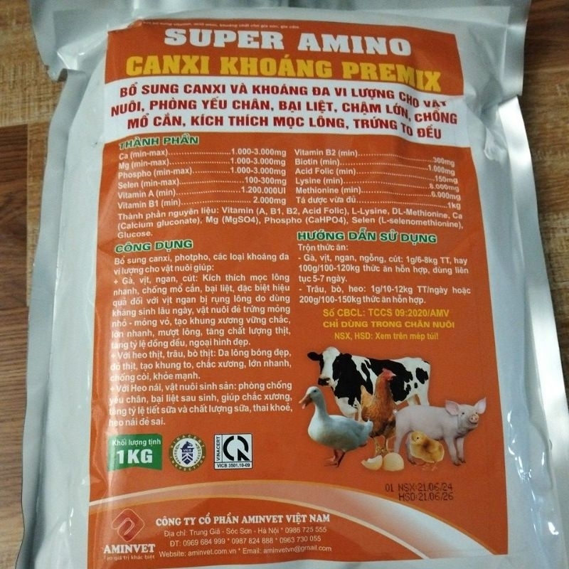 Canxi Khoáng Premix 1kg Bổ sung canxi cho gà chống bại liệt, mổ lông cắn đuôi