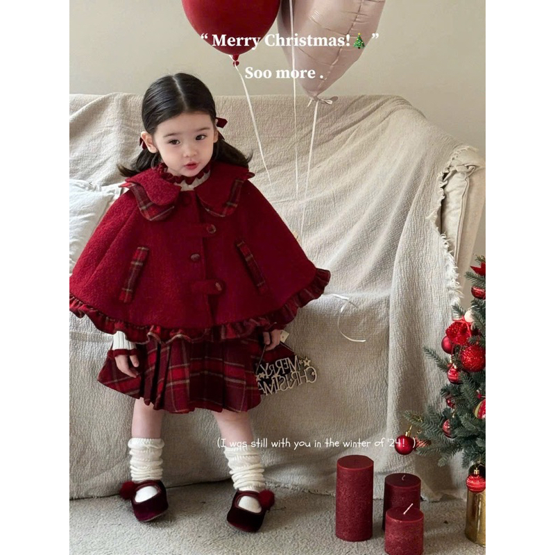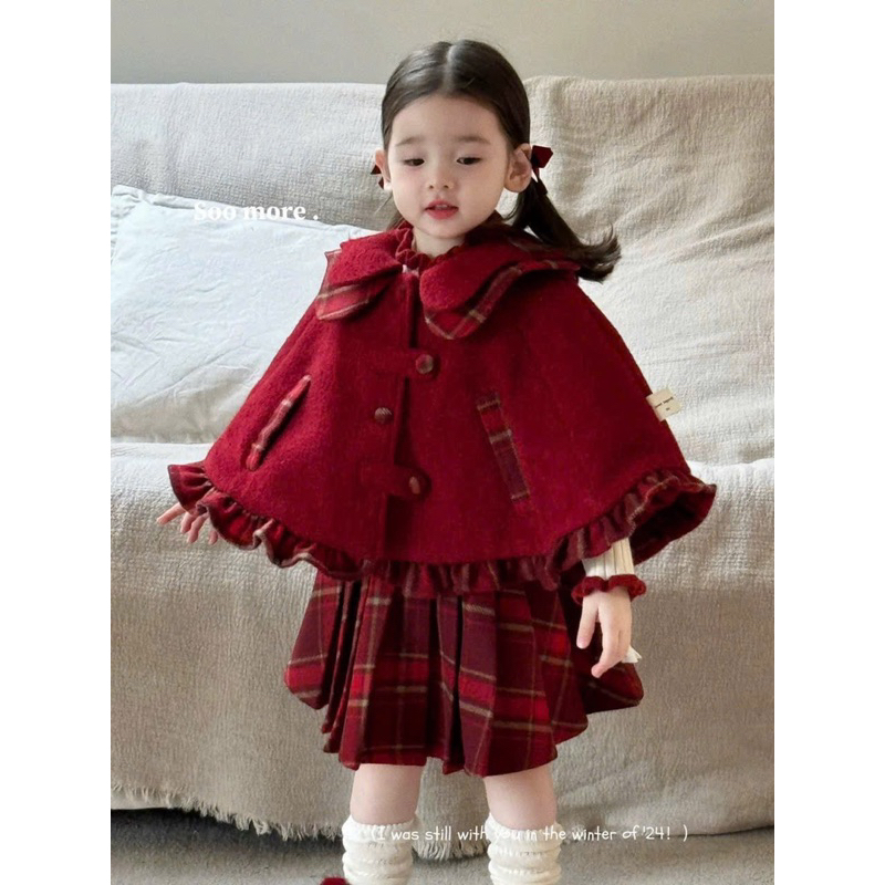Set dạ choàng kèm chân váy dạ cho bé kèm ảnh thật