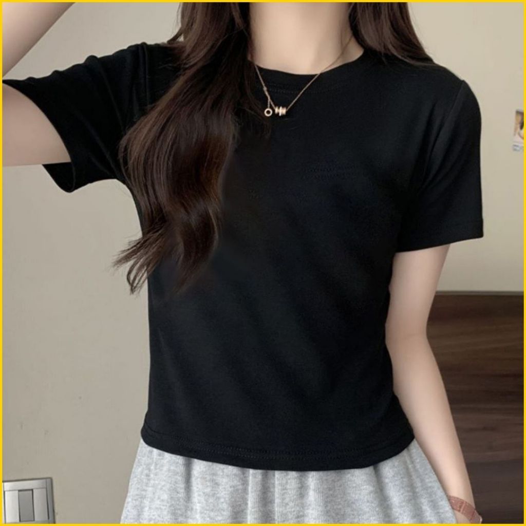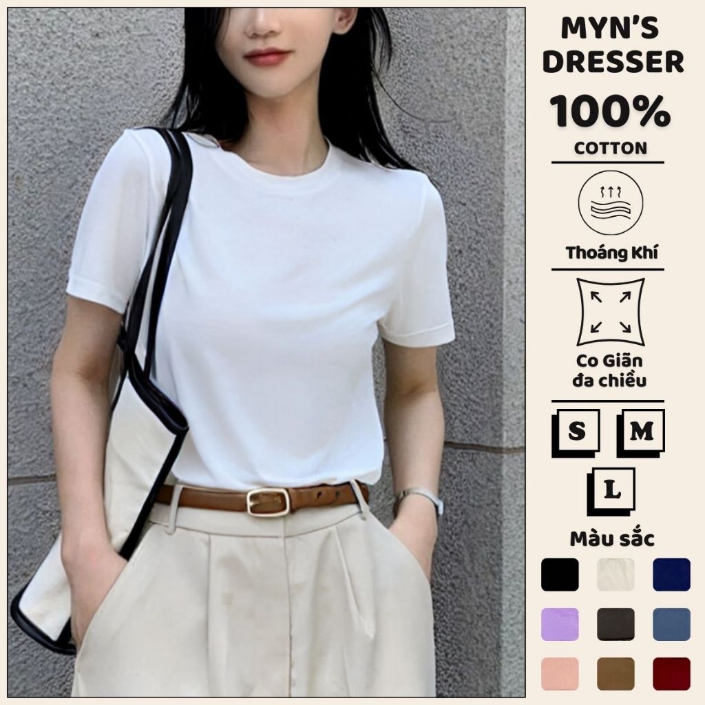 Áo thun nữ Myn dáng trơn cổ tròn tay ngắn form vừa ôm body vải cotton CAO CẤP màu trắng đen MD24.01