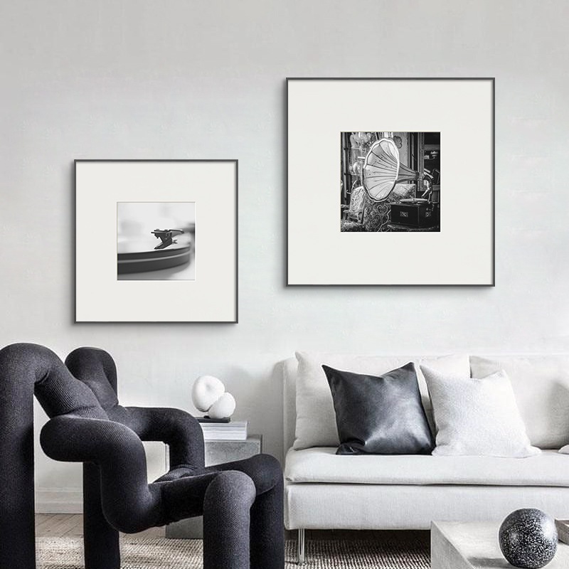 [THAY ĐƯỢC ẢNH] Khung tranh khổ vuông, khung ảnh, khung tranh phong cảnh đen trắng, trang trí phòng khách