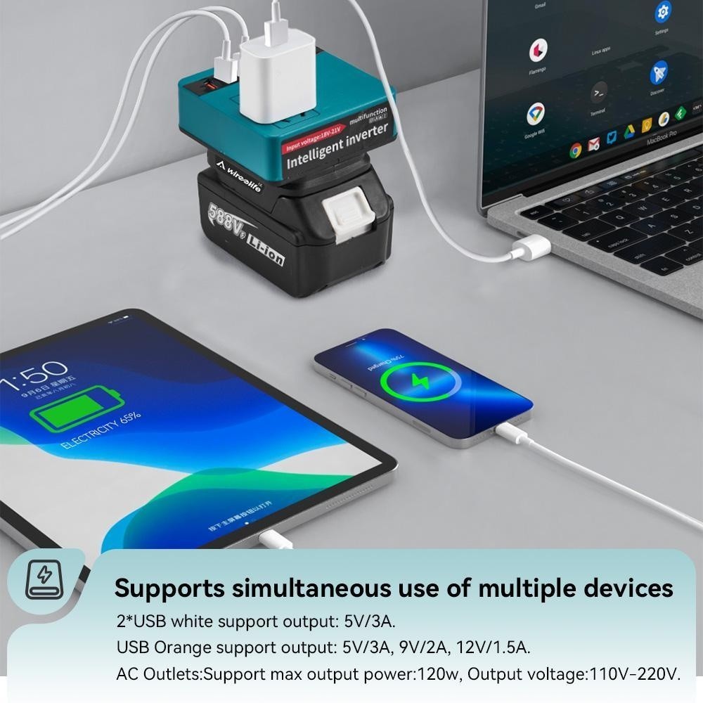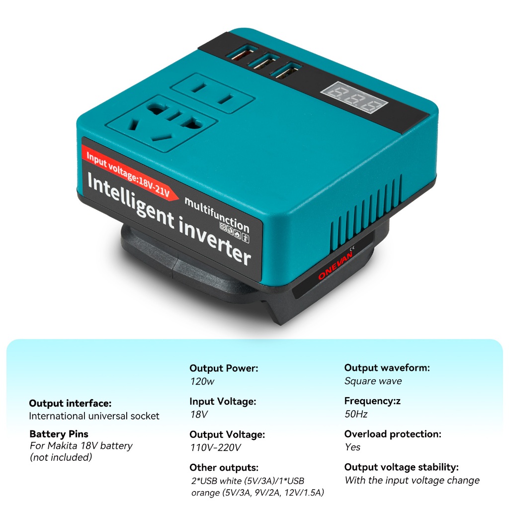 YOUFIDAR Bộ chuyển đổi biến tần di động Bộ chuyển đổi nguồn điện 120w 18v cho pin Makita 18v