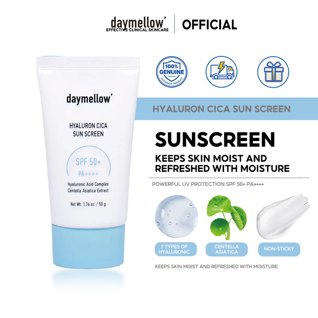 [Daymellow] Kem chống nắng Hyaluron Cica 1.76fl.oz / 50ml, SPF50 + PA + + +, Kem chống nắng mặt, Centella, Niacinamide, No White Cast, dành cho mọi loại da, Kem chống nắng mặt bảo vệ UVA & UVB