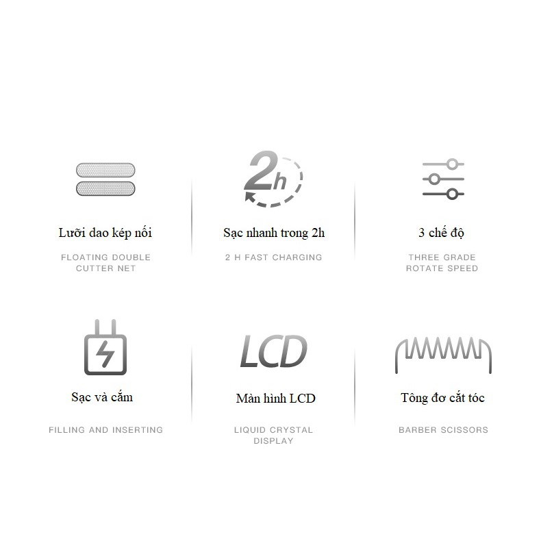 Máy cạo râu, cạo tóc đầu trọc dành cho nam 2 trong 1 tích hợp hợp màn hình LCD sạc USB.