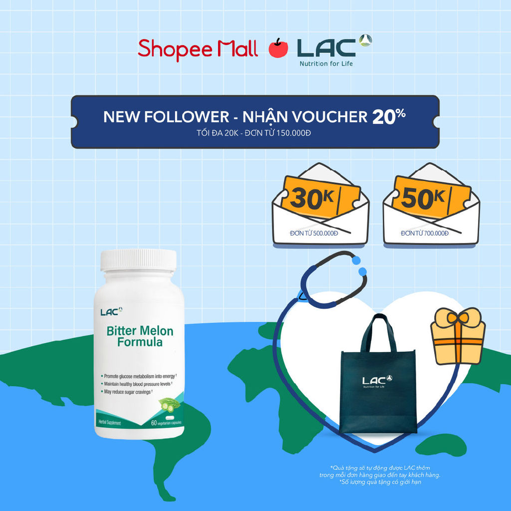 Viên uống cải thiện đường huyết chiết xuất mướp đắng LAC Bitter Melon Formula (60 viên)