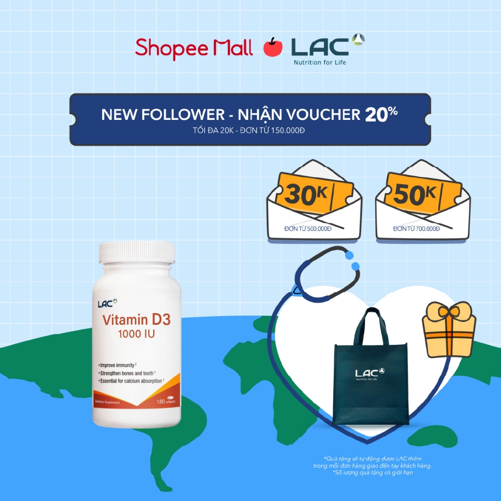 Viên uống bổ sung vitamin D3 hỗ trợ xương khớp & miễn dịch LAC Vitamin D3 1000 IU (180 viên)