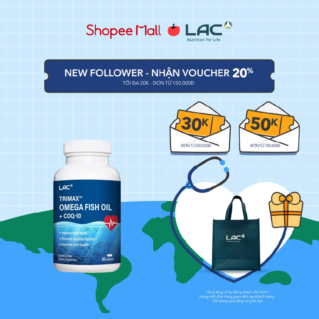 Viên uống bổ sung omega hỗ trợ tim mạch LAC Trimax Omega Fish Oil + CoQ-10 (60 viên)