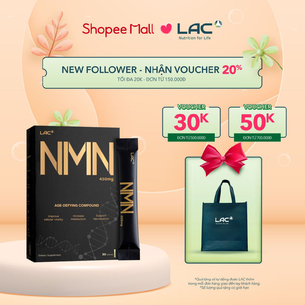 Bột hòa tan tăng cường NAD+ chống lão hóa LAC NMN 450mg (1.5g x 30 gói)