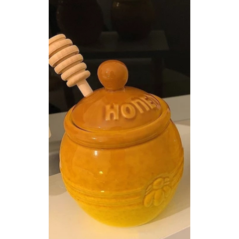 ⭐HÀNG CÓ SẴN⭐ Bình bảo quản mật ong bằng sứ có nắp Bình bảo quản có que khuấy bằng gỗ Nhà bếp