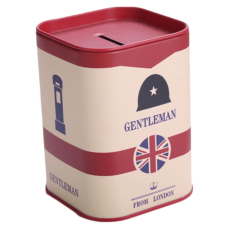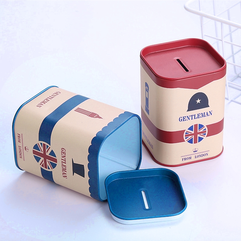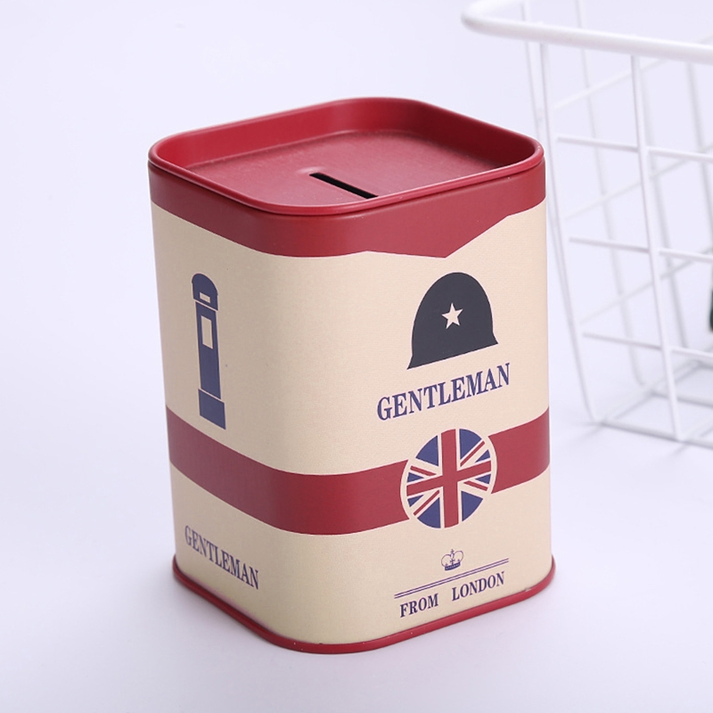 Hộp Đựng Tiền Tiết Kiệm Hình Vuông Bằng Thiếc Kiểu London Dễ Thương Ốp