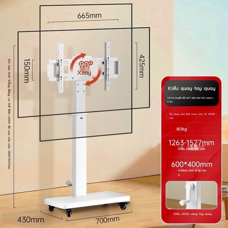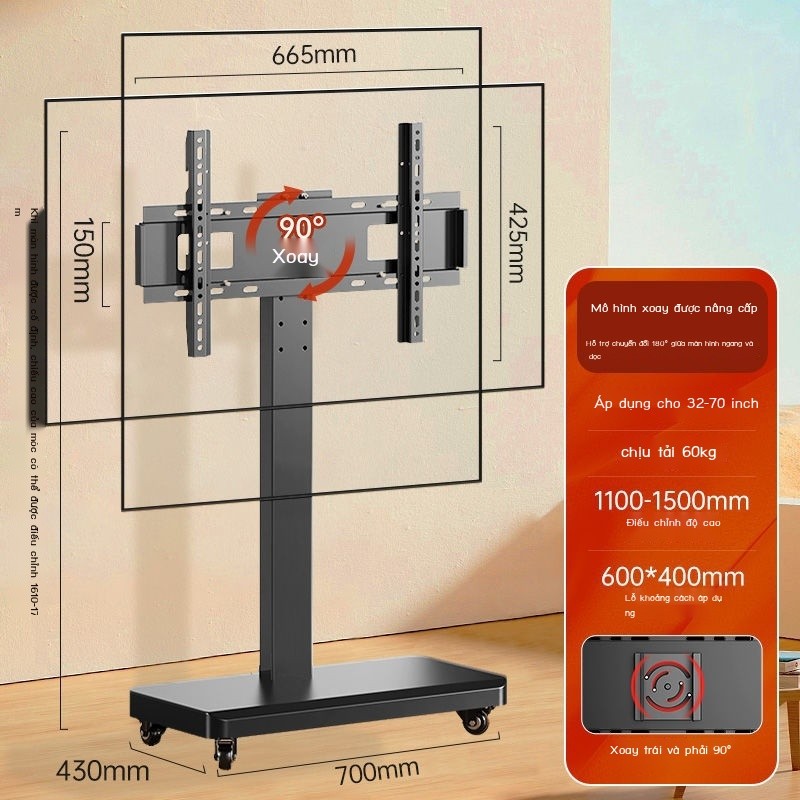 ✲ Giá đỡ TV trên sàn xe đẩy có thể di chuyển phát sóng trực tiếp màn hình dọc không có bánh xe