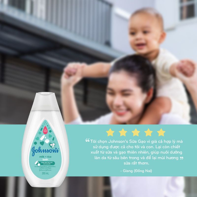 200ml-Sữa tắm gội Johnson's Milk + Rice tinh chất sữa gạo