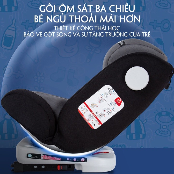 Ghế Ngồi Ô Tô Thông Minh Cho Trẻ Em Từ 0–12 Tuổi K085 | Xoay 360°, Bảo Vệ 4 Lớp, Vải Thoáng Khí