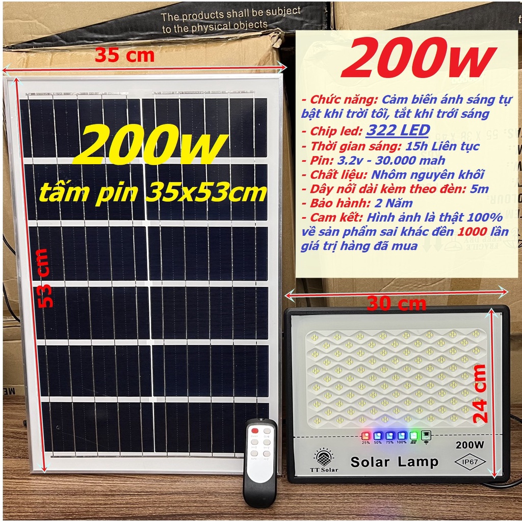 Đèn Năng Lượng Mặt Trời, Đèn Led Chống Lóa Cao Cấp 100W,200W,500W Khung Nhôm Bảo hành 2 năm