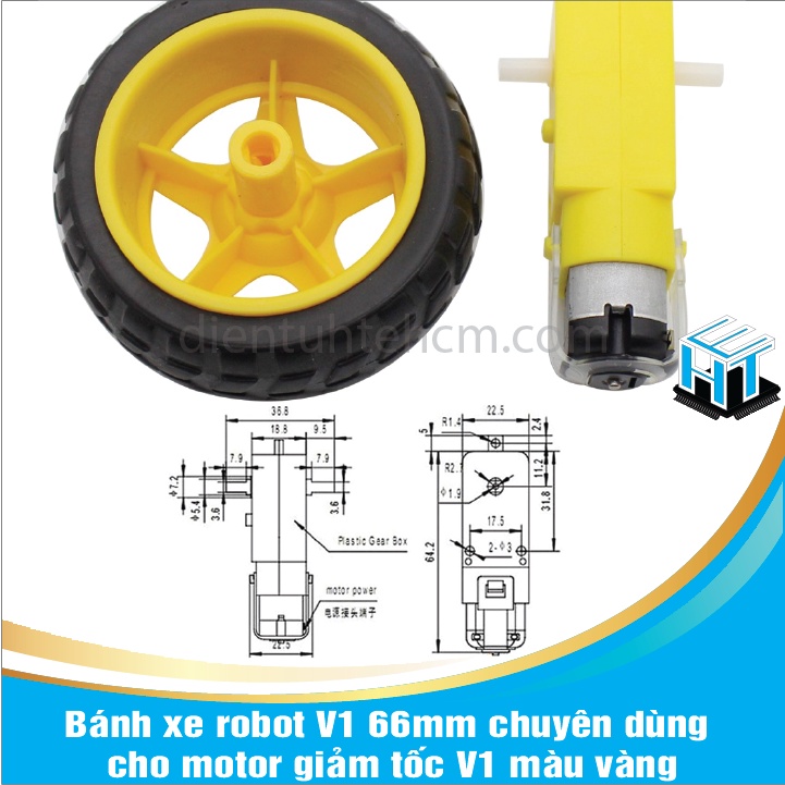 Động cơ ,Bánh xe robot V1 66mm chuyên dùng cho motor giảm tốc V1 màu vàng