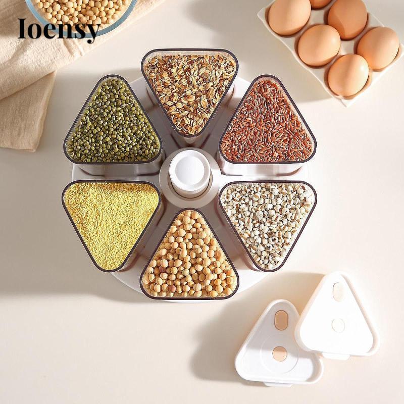 Hộp đựng ngũ cốc xoay 360 độ Hộp đựng nhựa có sáu ngăn cho nhà bếp Bột yến mạch Đậu