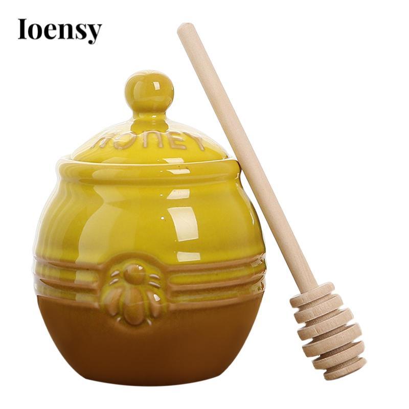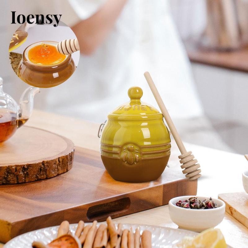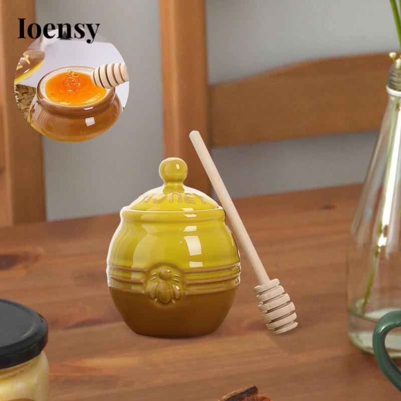 300ml Gốm Mật Ong Lọ Đường Có Dipper Và Nắp Đựng Mật Ong Trang Trí, Bình Gừng Cho Kẹo Gừng