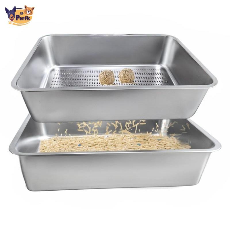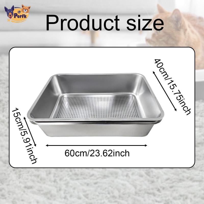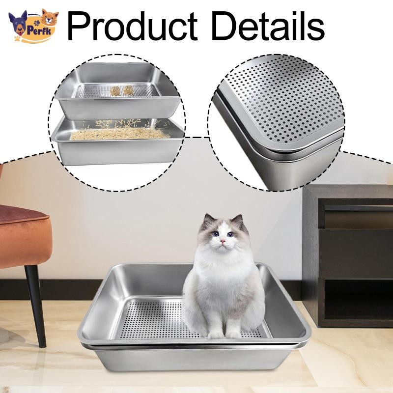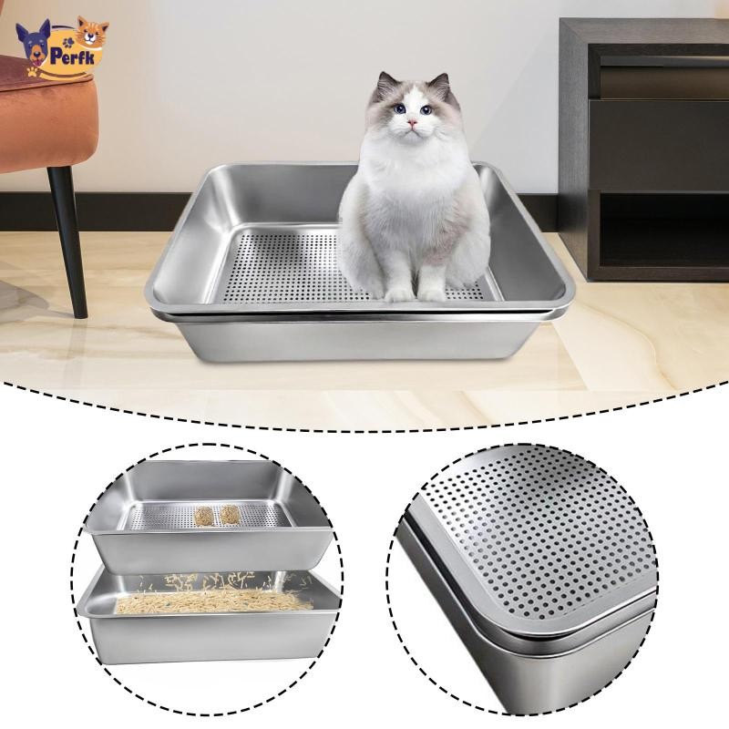 Perfk Cat Litter Box Kitten Nhà vệ sinh bằng thép không gỉ Đồ dùng cho thú cưng Mở Top Chống bắn tung tóe Hộp cát mặt cao lớn Khay xả chắc chắn