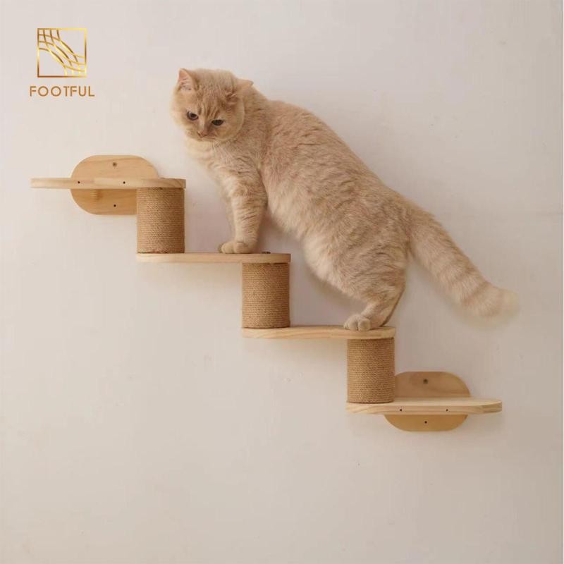 Kệ treo tường cho mèo Cat Climber 4 bước, Đồ nội thất treo tường cho mèo trong nhà, Kệ leo núi cho mèo cá rô để cào khi chơi leo núi