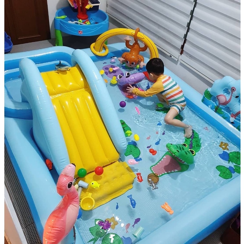 Bể bơi phao trẻ em có cầu trượt INTEX 57161 , bơm hơi, có nhiều trò chơi thú vị cho bé -BH 12tháng