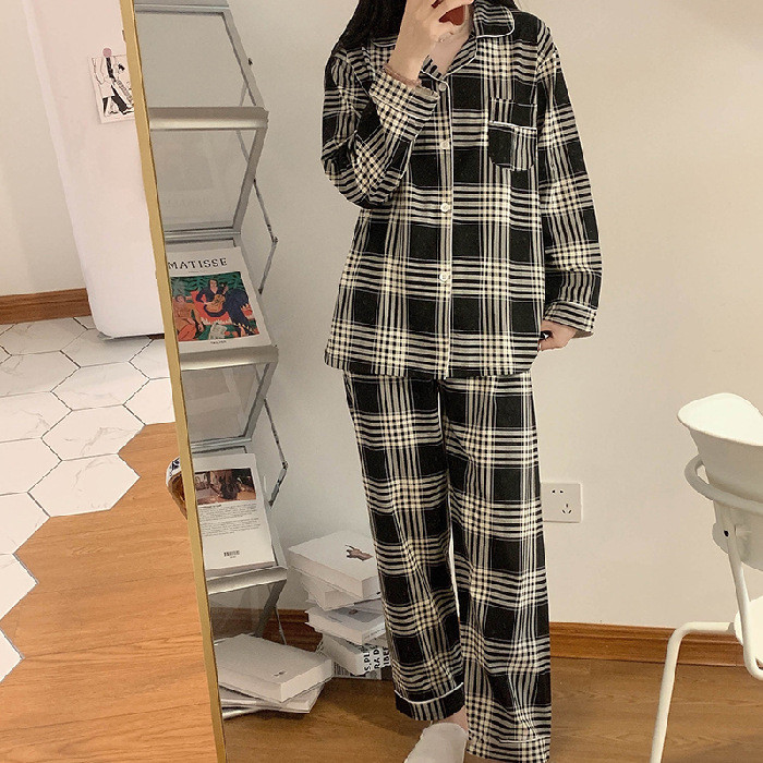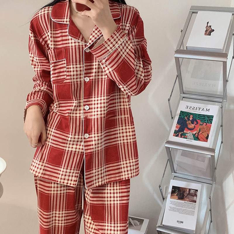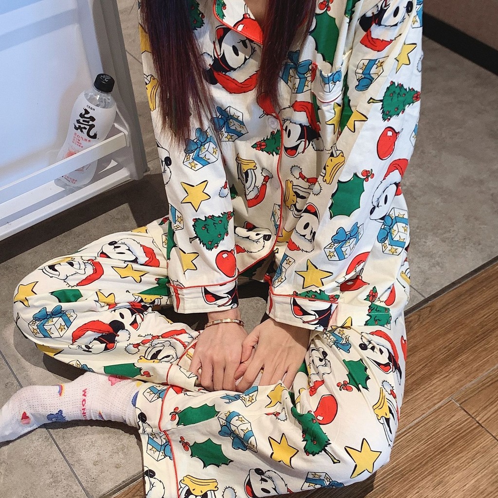 2025 Giáng sinh kẻ sọc phụ nữ áo ngủ dài tay đơn giản phù hợp với cuộc sống hàng ngày