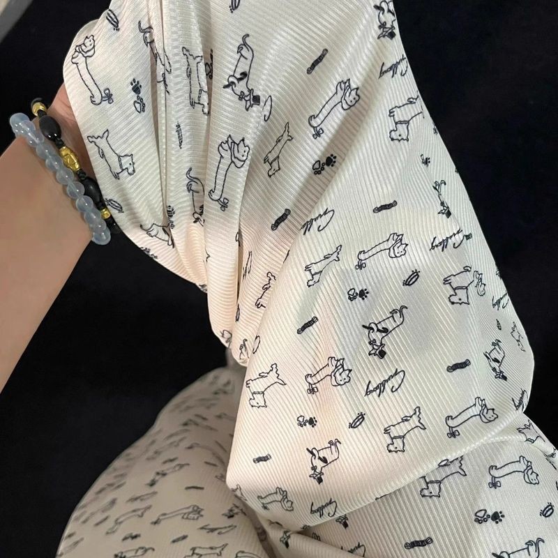 YUANQI KIDS Quần ống rộng in hình chó phong cách Hàn Quốc dễ thương dành cho bé gái