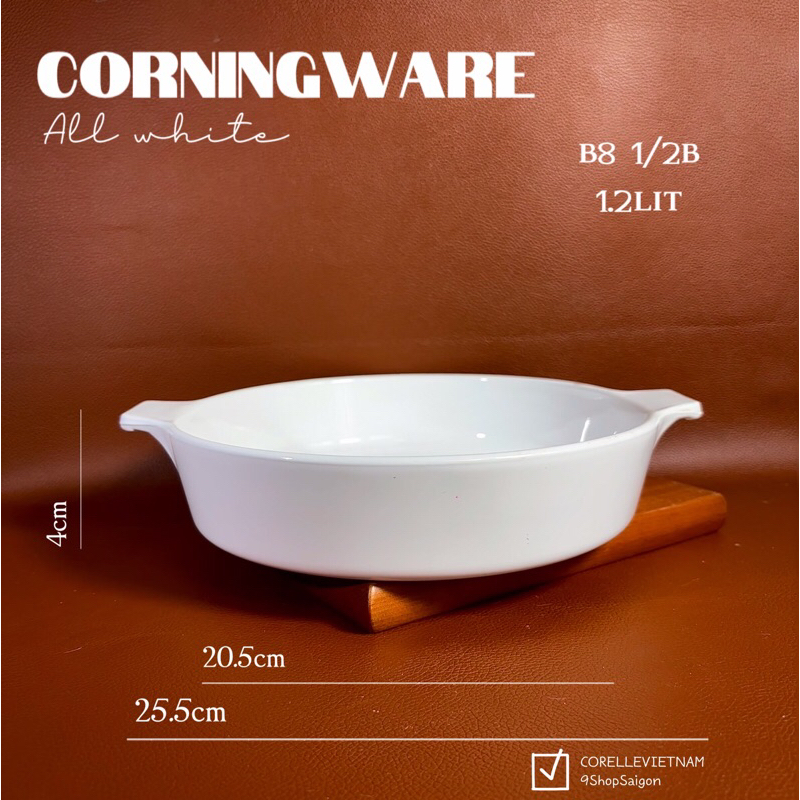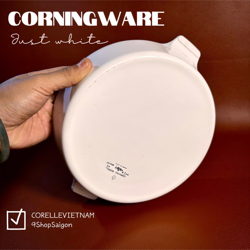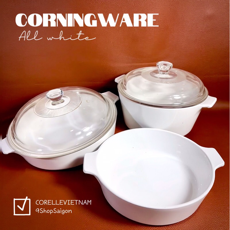 [Hiếm] CorningWare - White - Full 01 Chảo/ Nồi Tròn Bằng Thuỷ Tinh Vitrelle Chịu Sốc Nhiệt