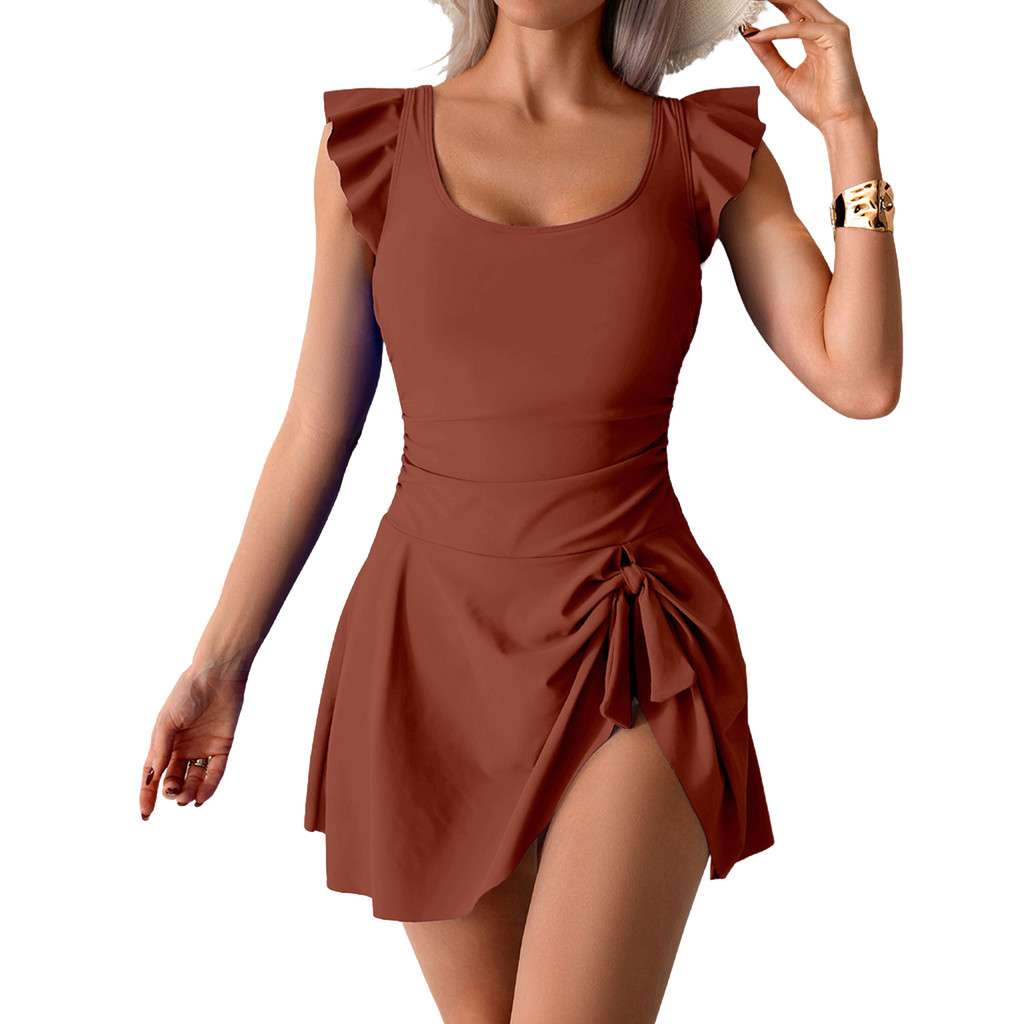 QUILXLENT Đồ bơi nữ Ruffle viền không đều Plus Kích thước Trang phục tắm suối nước nóng bảo thủ Dòng chữ A Nhanh khô với miếng đệm ngực Đầm bơi đi biển