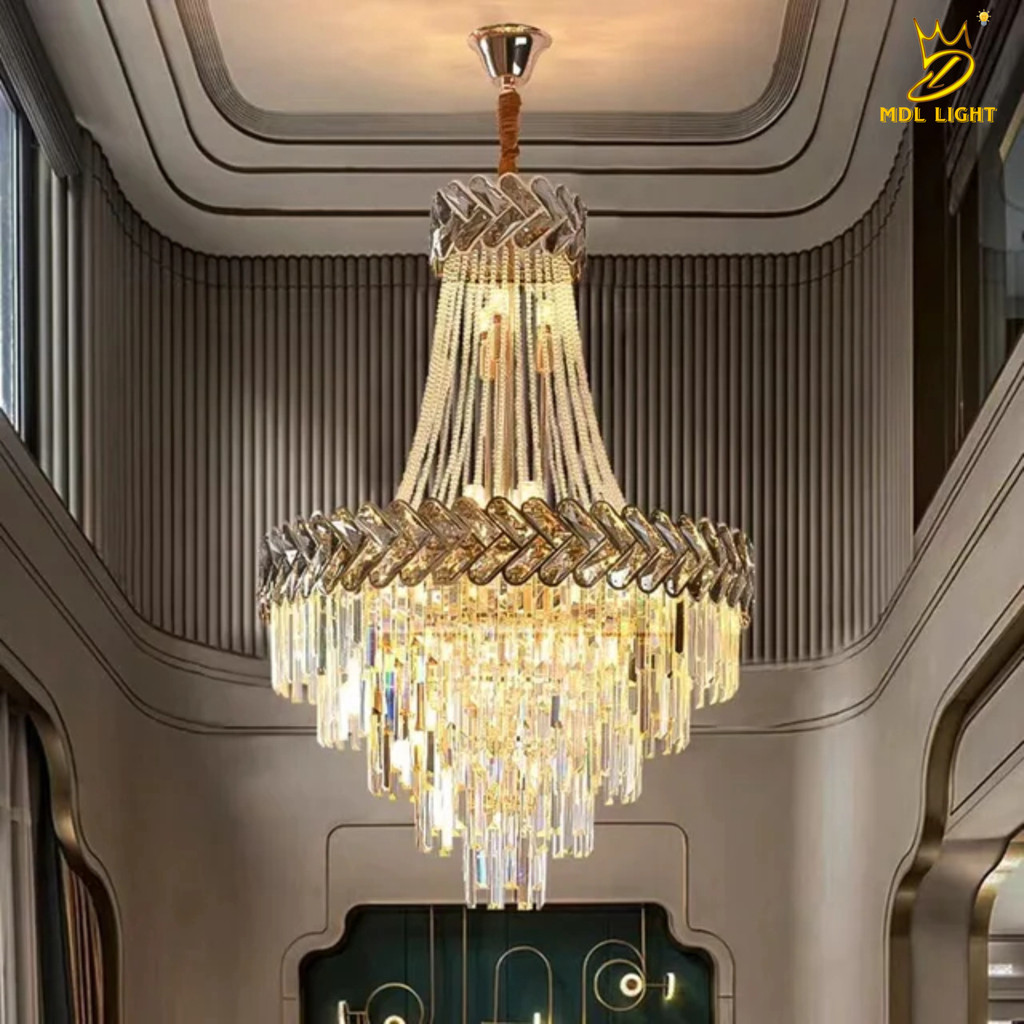 Đèn thả chùm pha lê thông tầng bắc âu MDL - KTL09 đèn thả chùm phale sảnh, phòng khách cao cấp phong cách hiện đại