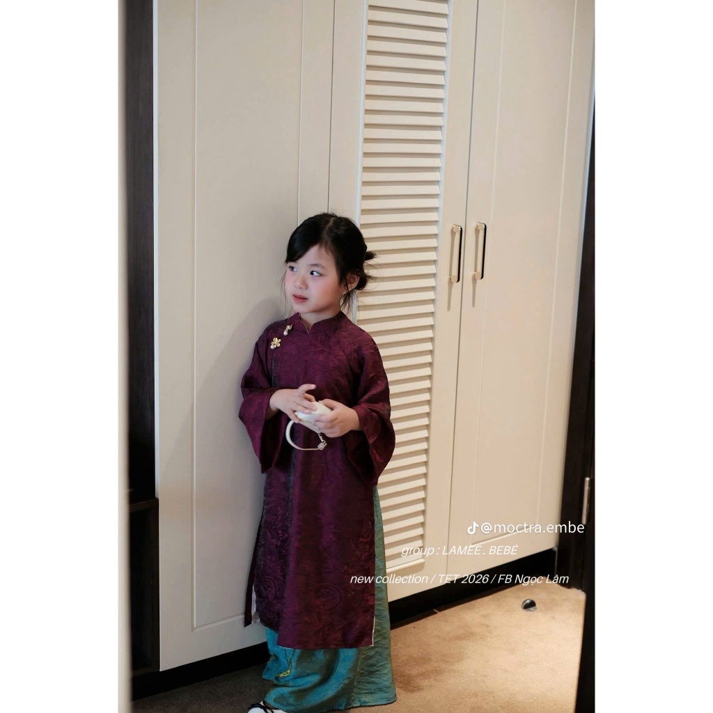[ 2026 ] Sét Áo dài bé gái vải lụa cao cấp 2 màu xanh , đỏ cho bé gái 10 -30kg, Áo dài mặc tết 2026