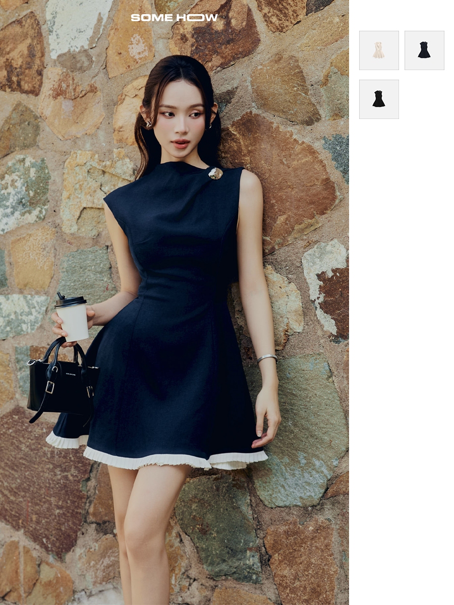 [Best Seller] Đầm Ngắn Sleeveless Pleated Hem Detail , Chất Vải Cotton Hàn Thoải Mái ,WDN141, SOME HOW STORE