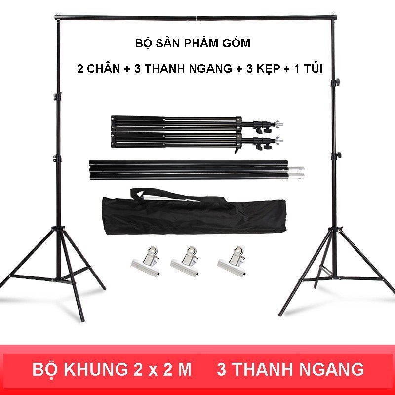 Bộ khung treo và phông chụp ảnh chữ U nhiều cỡ tặng 4 kẹp phông