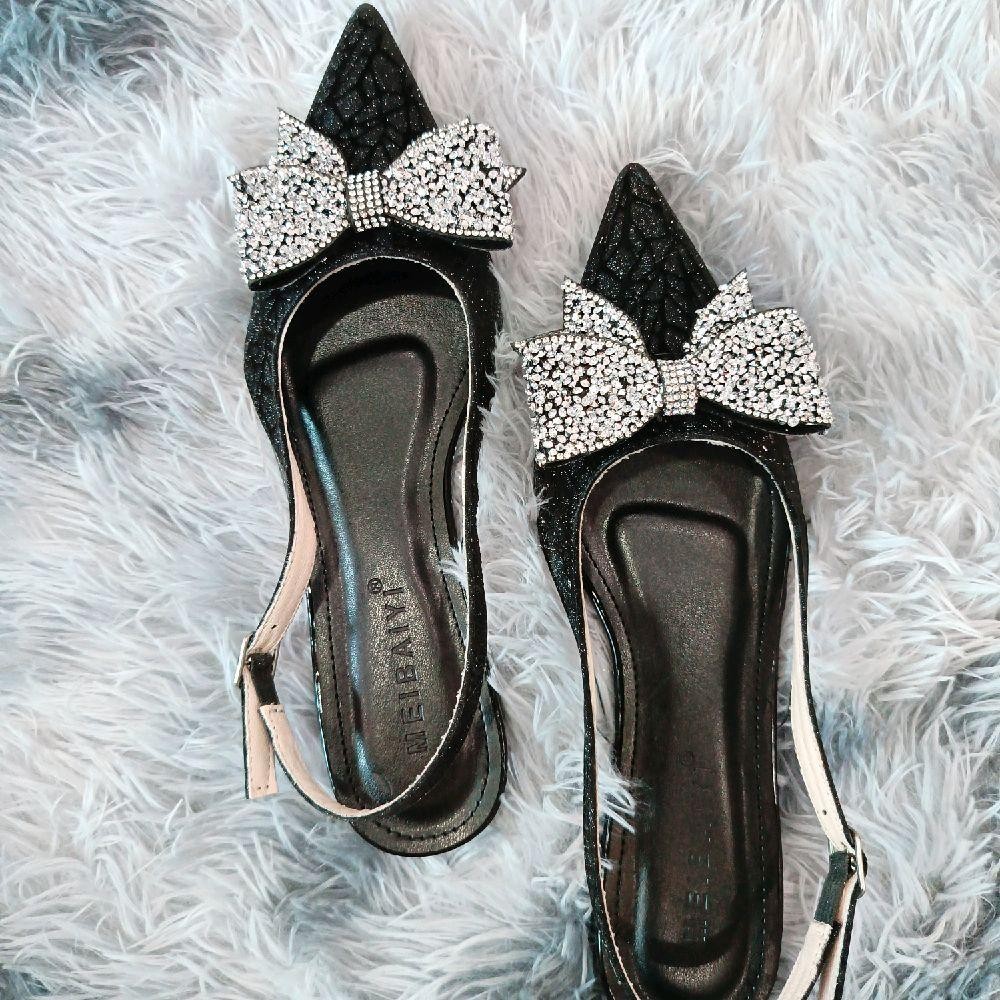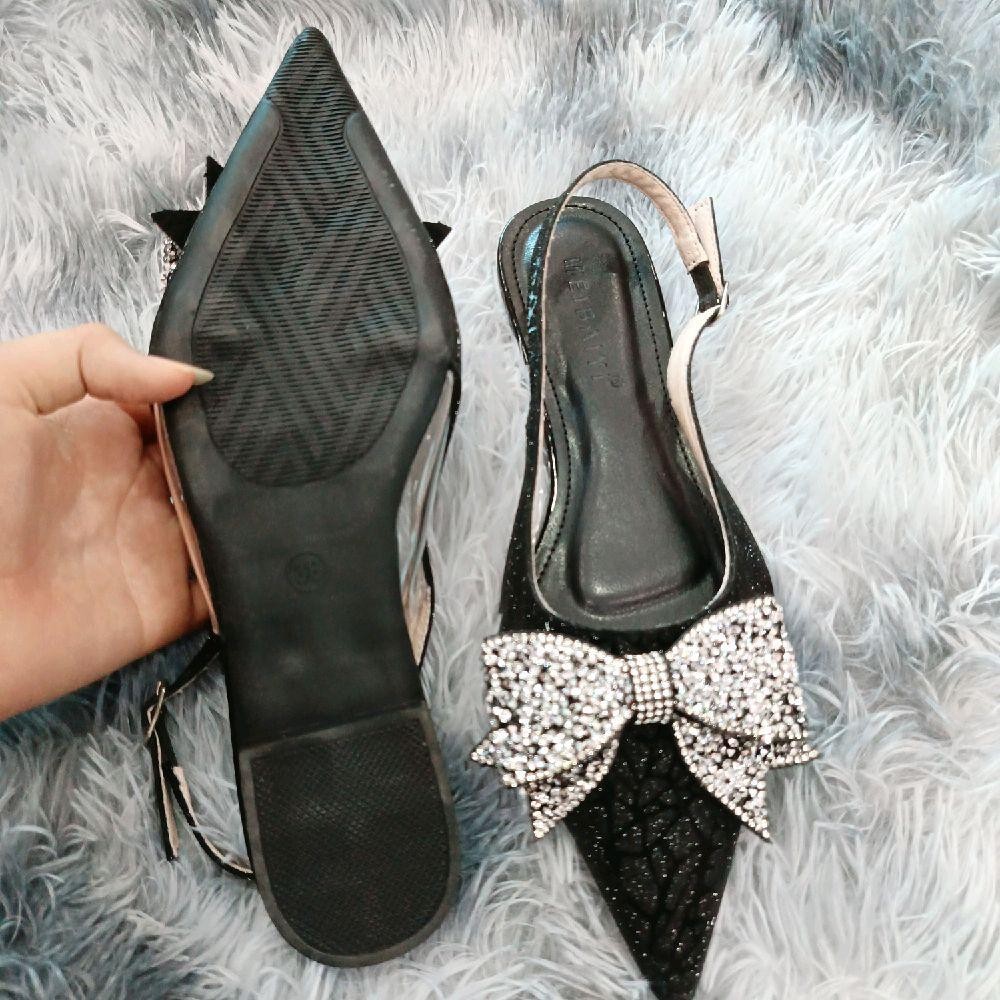 giày bệt đính nơ đá mũi nhọn -cao 1p